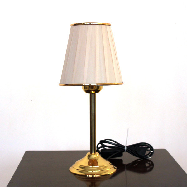 آباژور رومیزی مدل: V016G با بدنه طلایی رنگ تهیه شده از آلیاژی که هرگز سیاه نمیشود ، در اندازه کوچک مناسب برای استفاده در اتاق خواب یا مکانهای کوچک با شید یا کلاهک پلیسه در رنگهای متنوع میباشد