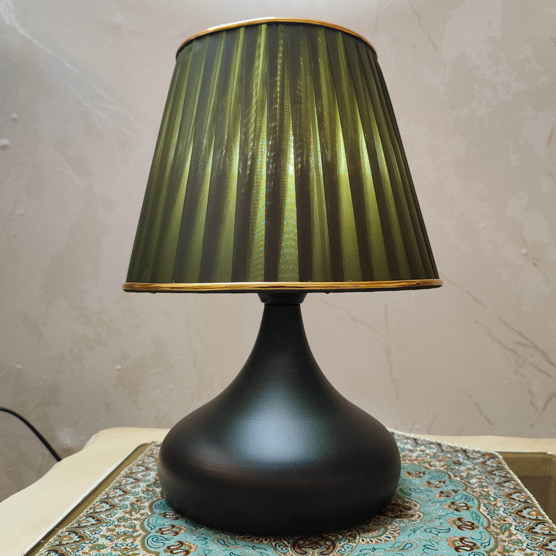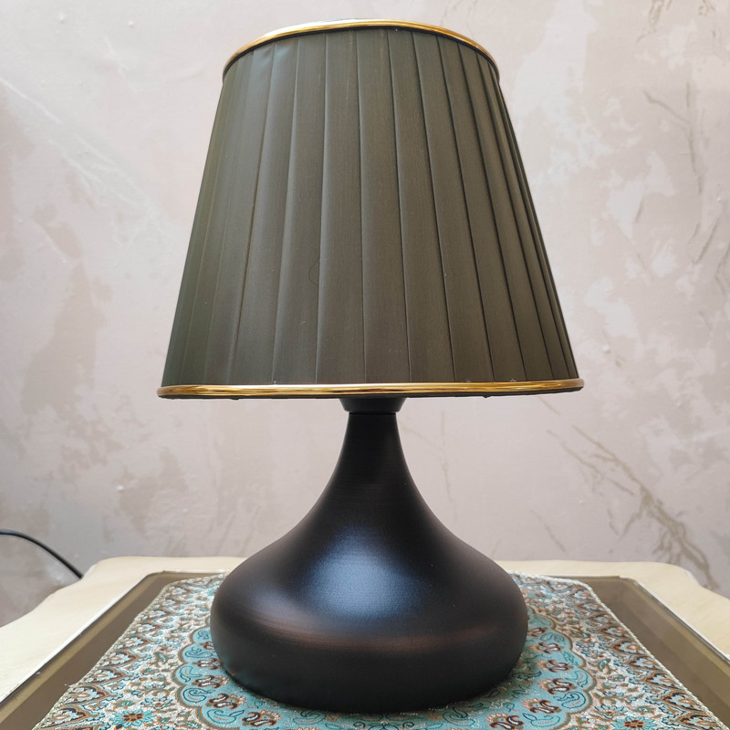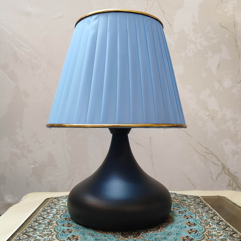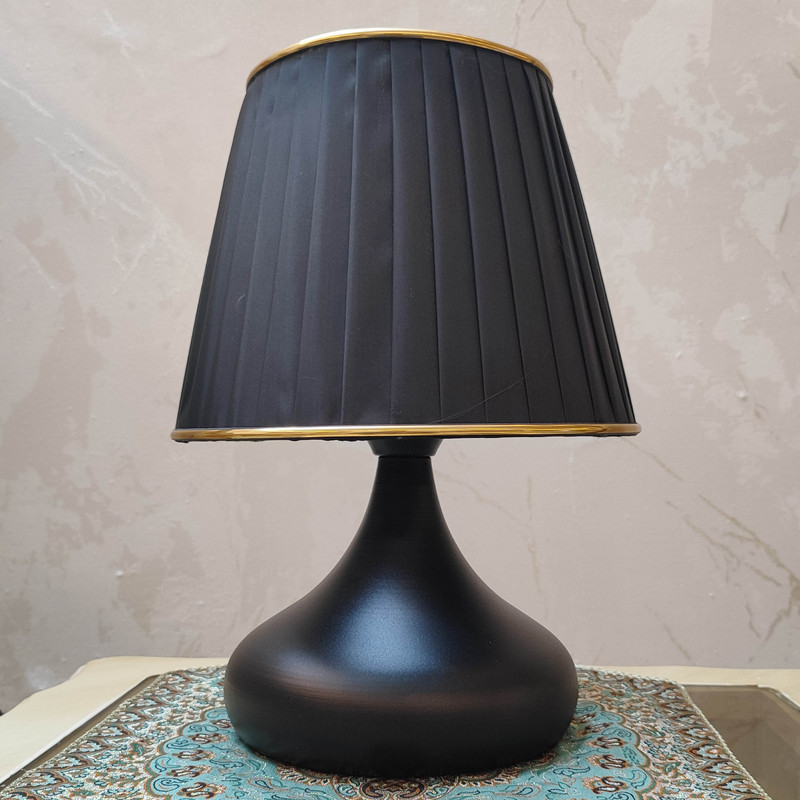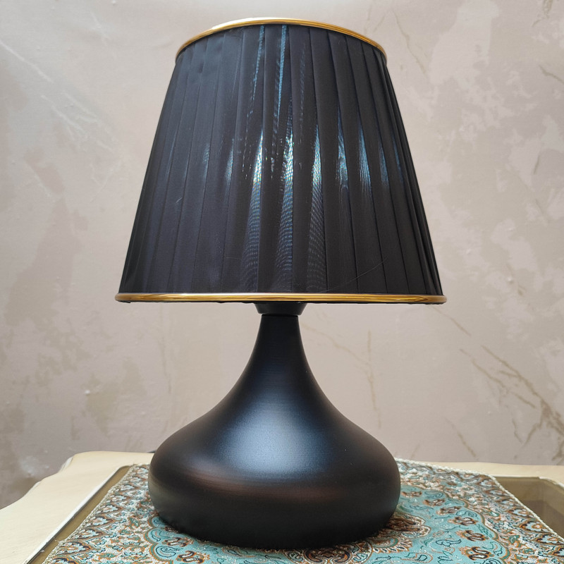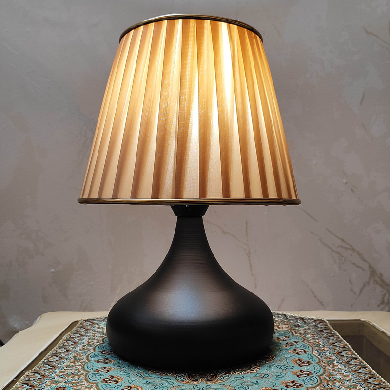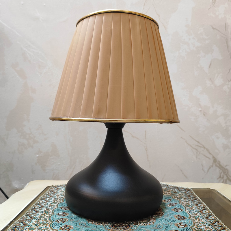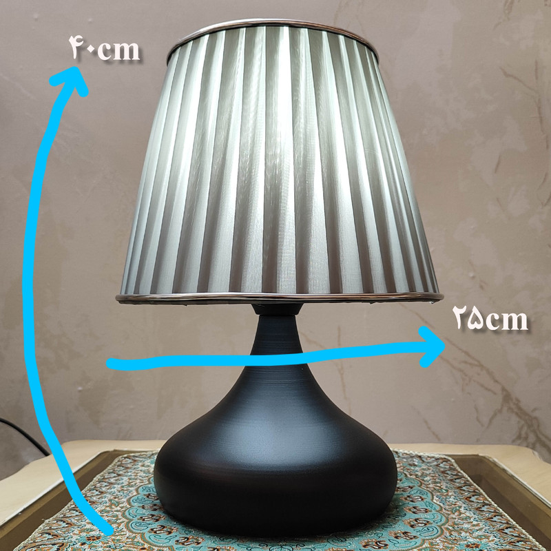 آباژور رومیزی دارای شید پارچه ای و پایه فلزی ...درون پایه خالی است و شما میتونید در صورت لزوم سیم اضافی را داخل پایه جمع نمایید...طول عرض ارتفاع این آباژور به شکلی هست که مناسب کنار تخت میباشد ...با توجه به شید نور ملایمی را پخش میکند و میتوانم به عنوان چراغ مطالعه هم از آن استفاده کنید این آباژور دارای شید پارچه ای میباشد و با پایه فلزی رنگ به کار رفته بر روی پایه الکترو استاتیک میباشد ارتفاع آباژور حدود ۴۰ سانتیمتر و قطر آباژور در بزرگترین قسمت ۲۰ سانتیمتر است